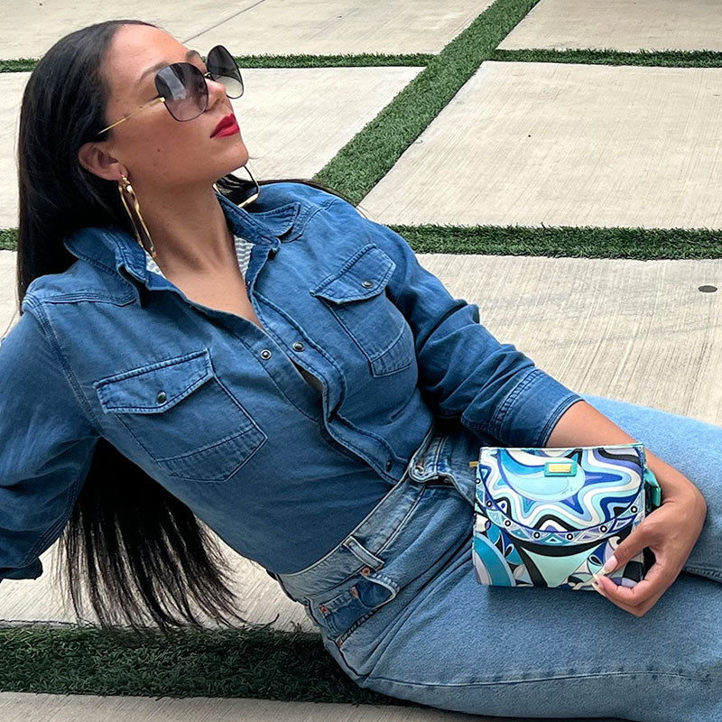 PUCCI Cosmetic Bag, turquoise, blue and white with gold zipper